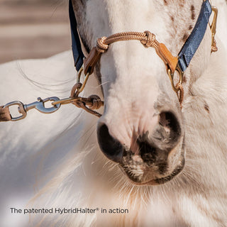 The patented Hybrid Halter is a full time replacement halter that your horse can wear for every life task.